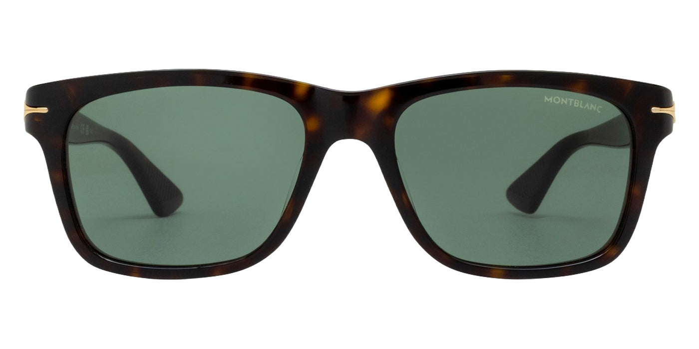 Montblanc MB0263S 002 54 sunglasses in Havana. The 002 Havana color frame is complimented with Green finish lenses. This model features Recycled Acetate Square Shape in size 54-18-145.