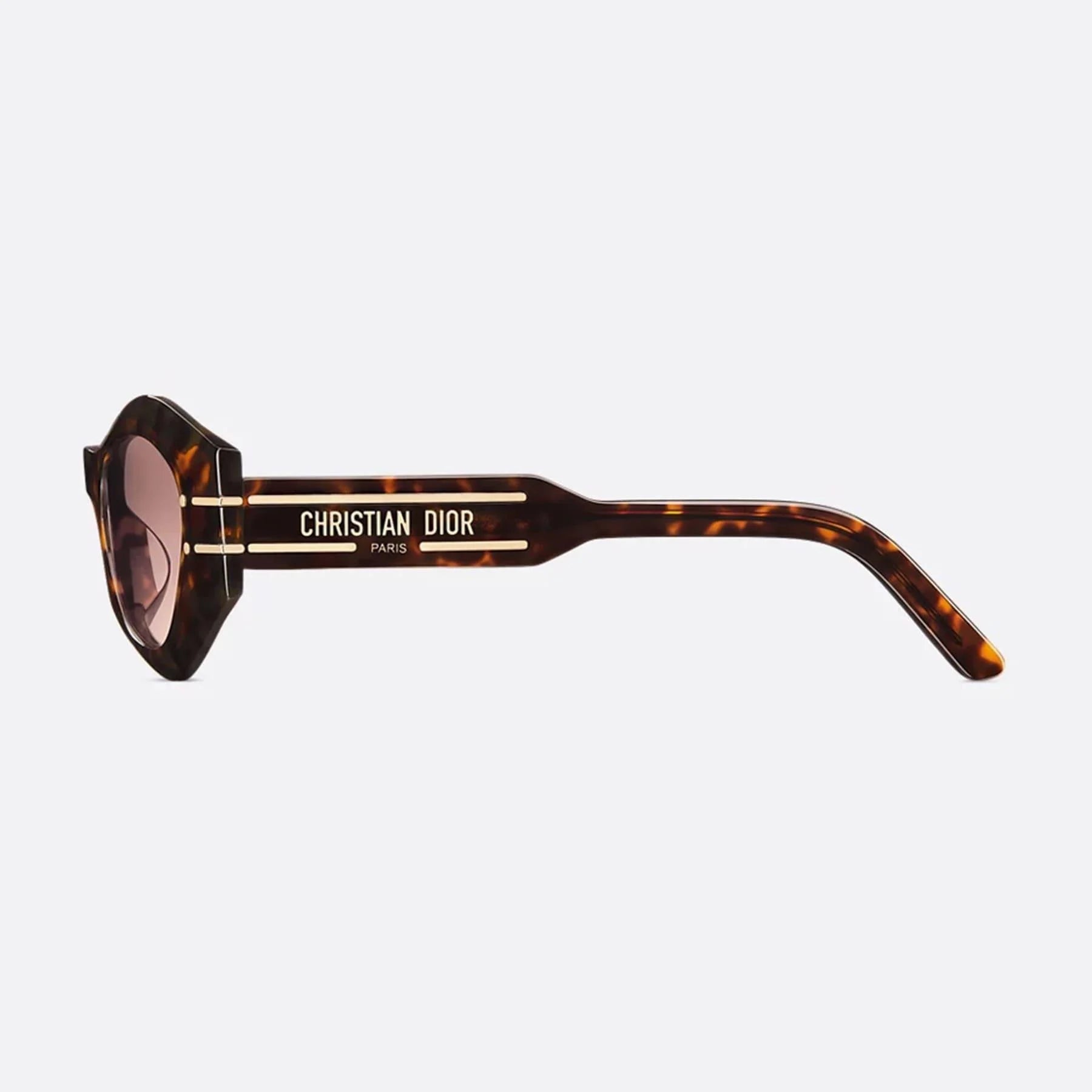The DiorSignature B1U sunglasses, the House's new iconic line, are a modern and bold butterfly-shaped design. The black acetate frame is distinguished by a play on curves and volumes for a graphic touch while the temples reveal the new 'CHRISTIAN DIOR PARIS' signature, further embellished with a gold-finish metal line that ends at the gray lenses. The new essential will lend a resolutely Dior style to any look.
