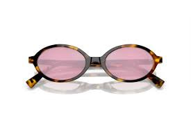 Miu Miu Breaking The Rules sunglasses collection model MU 04ZS honey havana full rim oval acetate frame with bordeaux lenses. Product code MU04ZS, color code VAU50D. Miu Miu sunglasses are the epitome of chic and sophisticated fashion. The line showcases unique and avant-garde designs, featuring bold frames, vibrant colors, and intricate detailing.