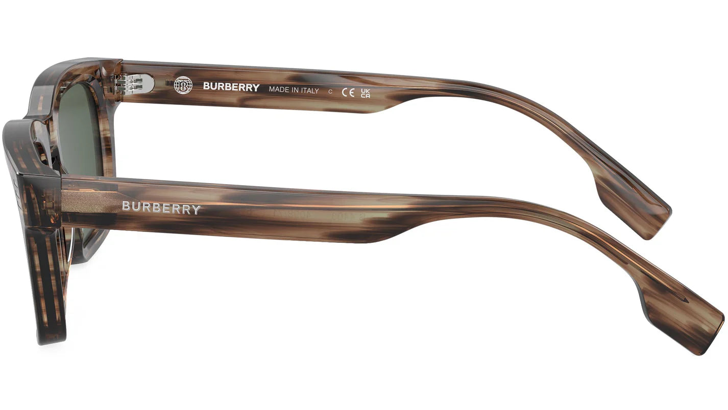 Burberry sunglasses for men model 4403 featuring green full rim acetate frame and base 4 curve dark green lens. high bridge fit. Frame line: B. Stripe. Brand code: BE4403. Color code: 409871.