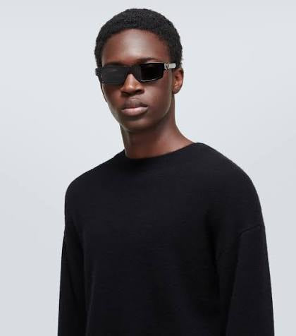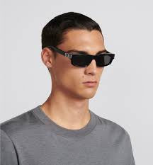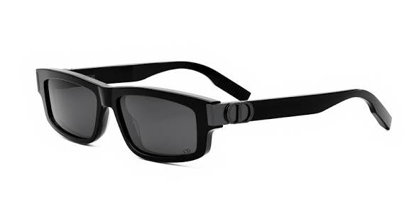 This square Dior sunglass comes in a shiny black frame with grey with light mirror lenses.