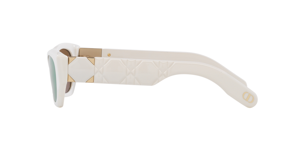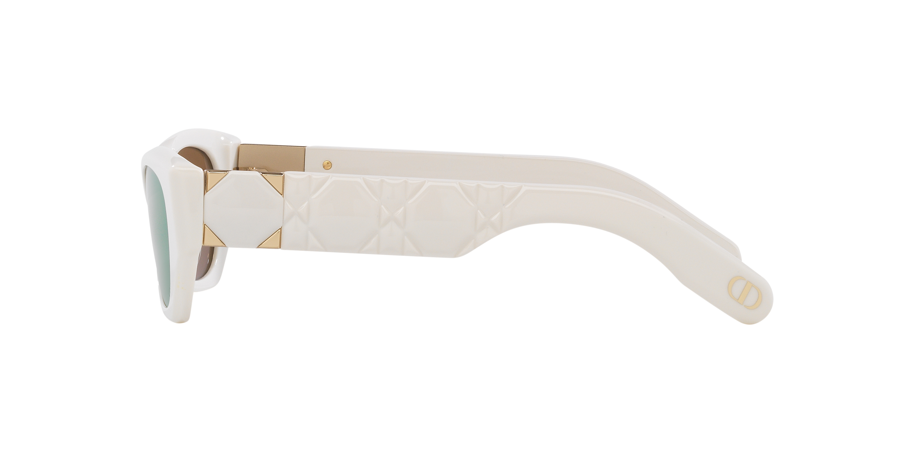 This cat eye Dior sunglass comes in a shiny white frame with brown with gold flash mirror lenses.