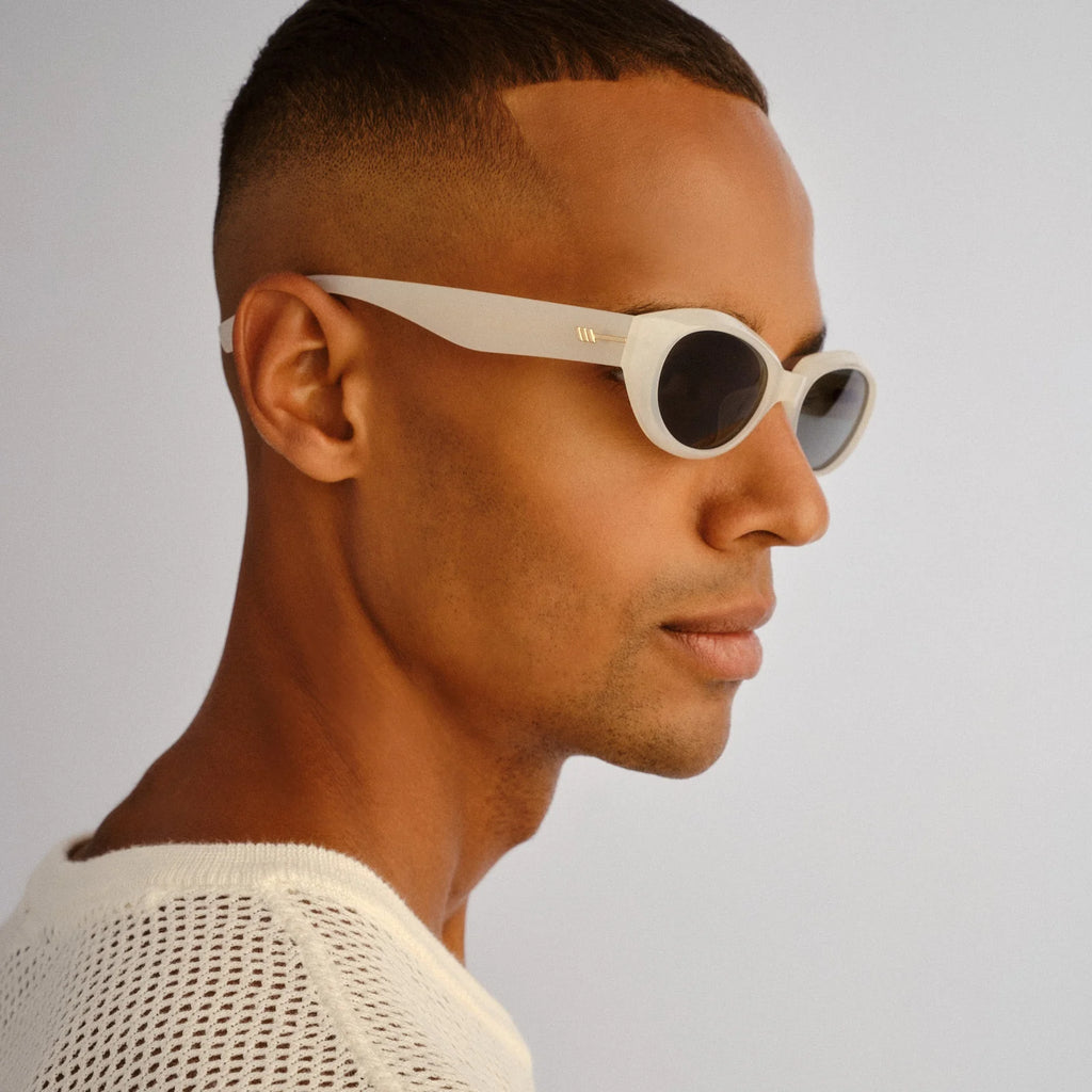 A modern reinterpretation of ‘90s oval frames, LE BIJOU features bold contours and a sculpted silhouette, balancing sleek elegance with a striking edge. Designed for wider faces, this frame features our classic horizontal pin stripe flagstripe hardware and is a statement in simplicity.