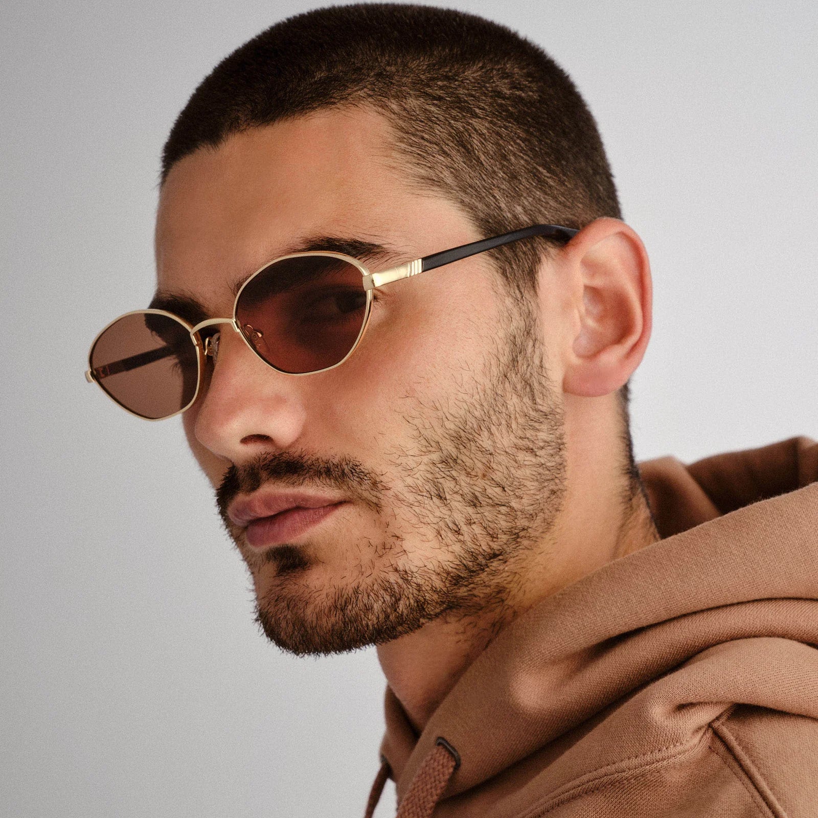 • Finished in a gold frame with brown mono lenses. • Sturdy metal frame fitted with allergy-free cushioned PVC nose pads. • Fitted with shatterproof and scratch resistant polycarbonate lenses.