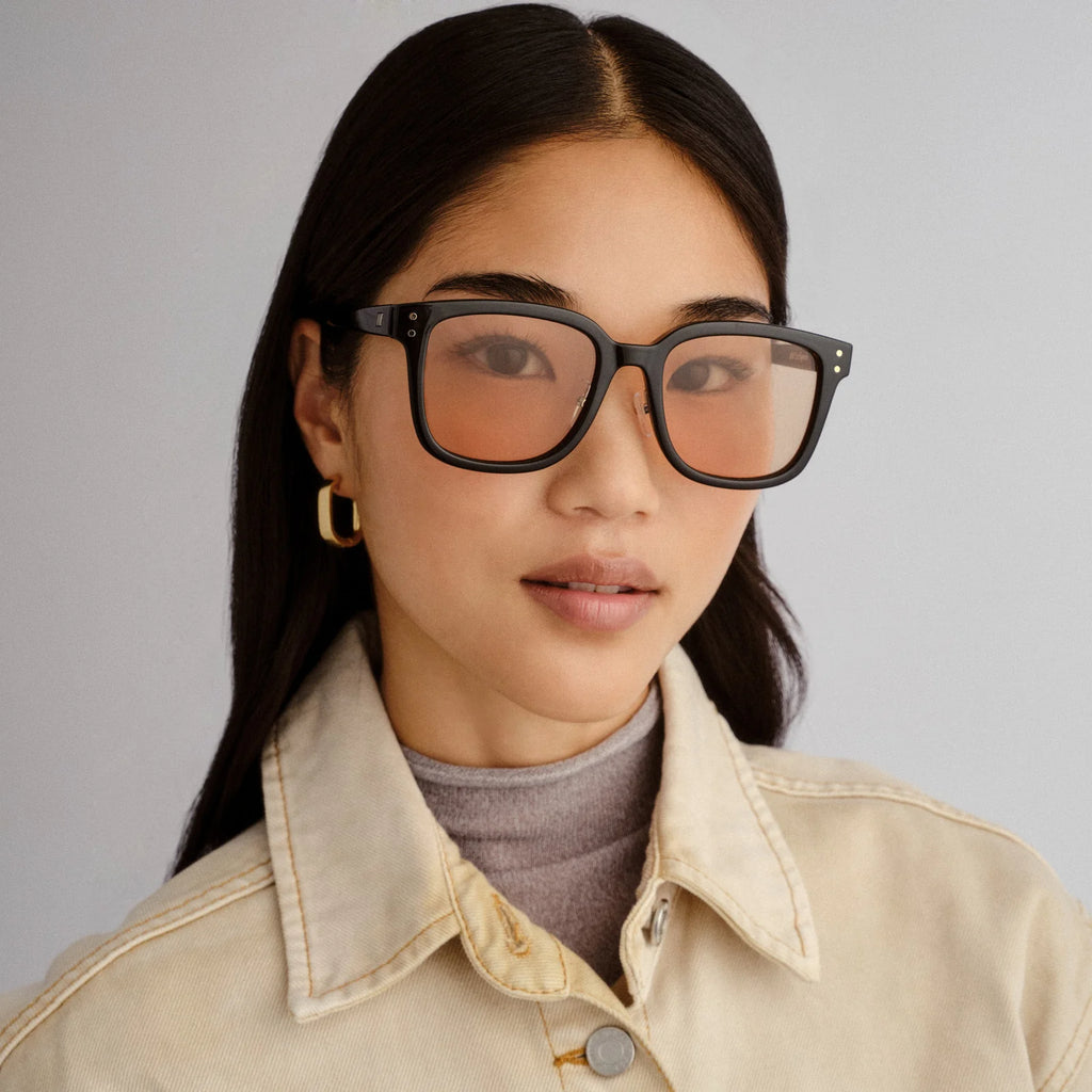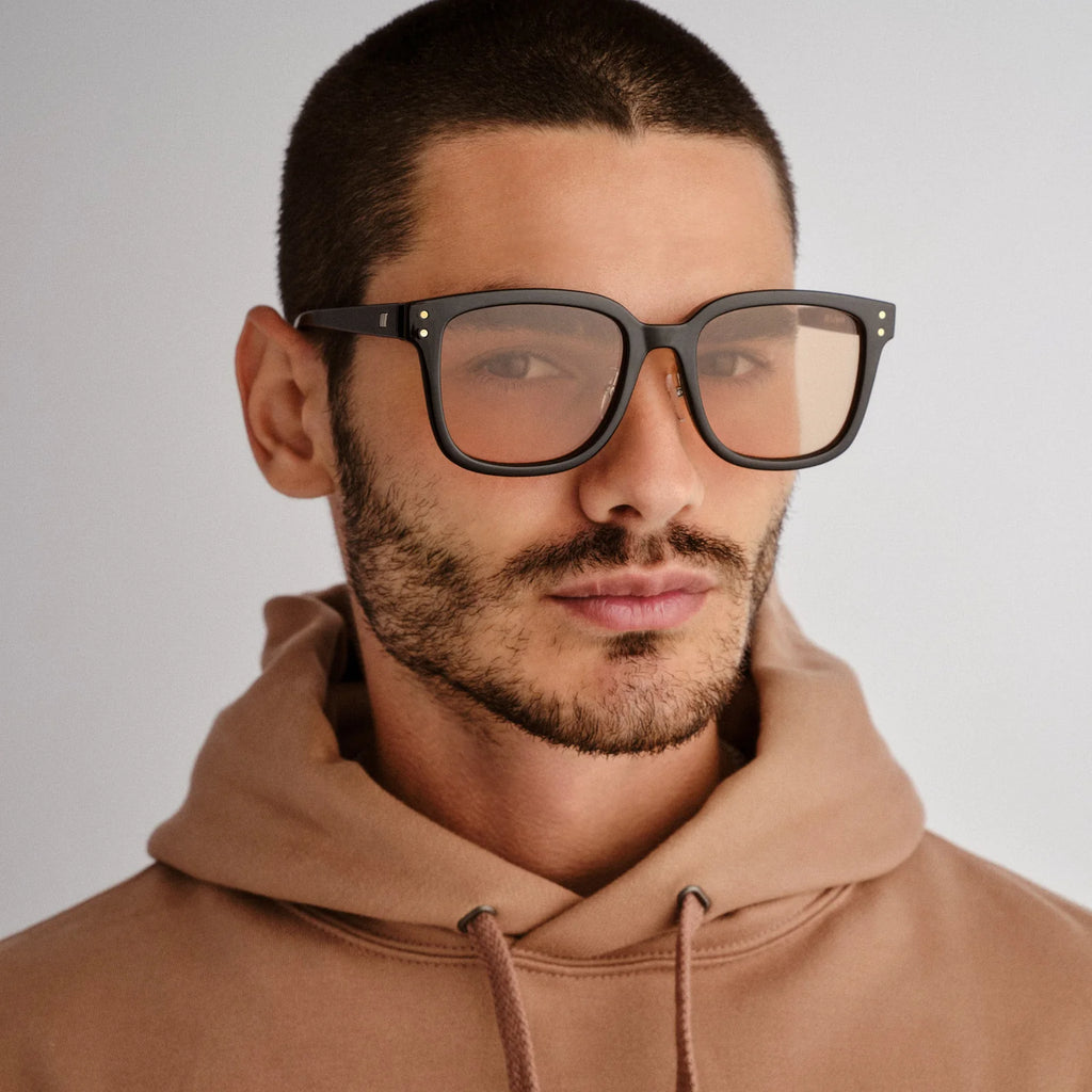 Bold yet effortlessly wearable, LE DOMINO is a modern take on the classic square silhouette - designed specifically for broader face shapes with a wide-fit frame that offers a more comfortable, tailored feel. Finished with adjustable nose pads for a custom fit, this frame is finished with double rivet detail and our classic flagstripe pin badge.