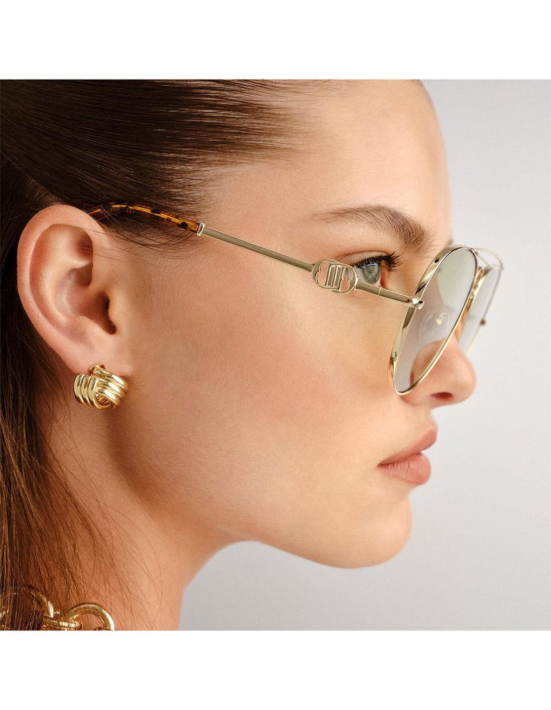 Designed with vintage inspired proportions our ABRACADABRA sunglasses are a luxurious update to the classic aviator. Featuring a premium heirloom infinity flagstripe cut out decal to temple and intricate bridge detailing this oversized frame is finished with a sleek and modern tip shape.