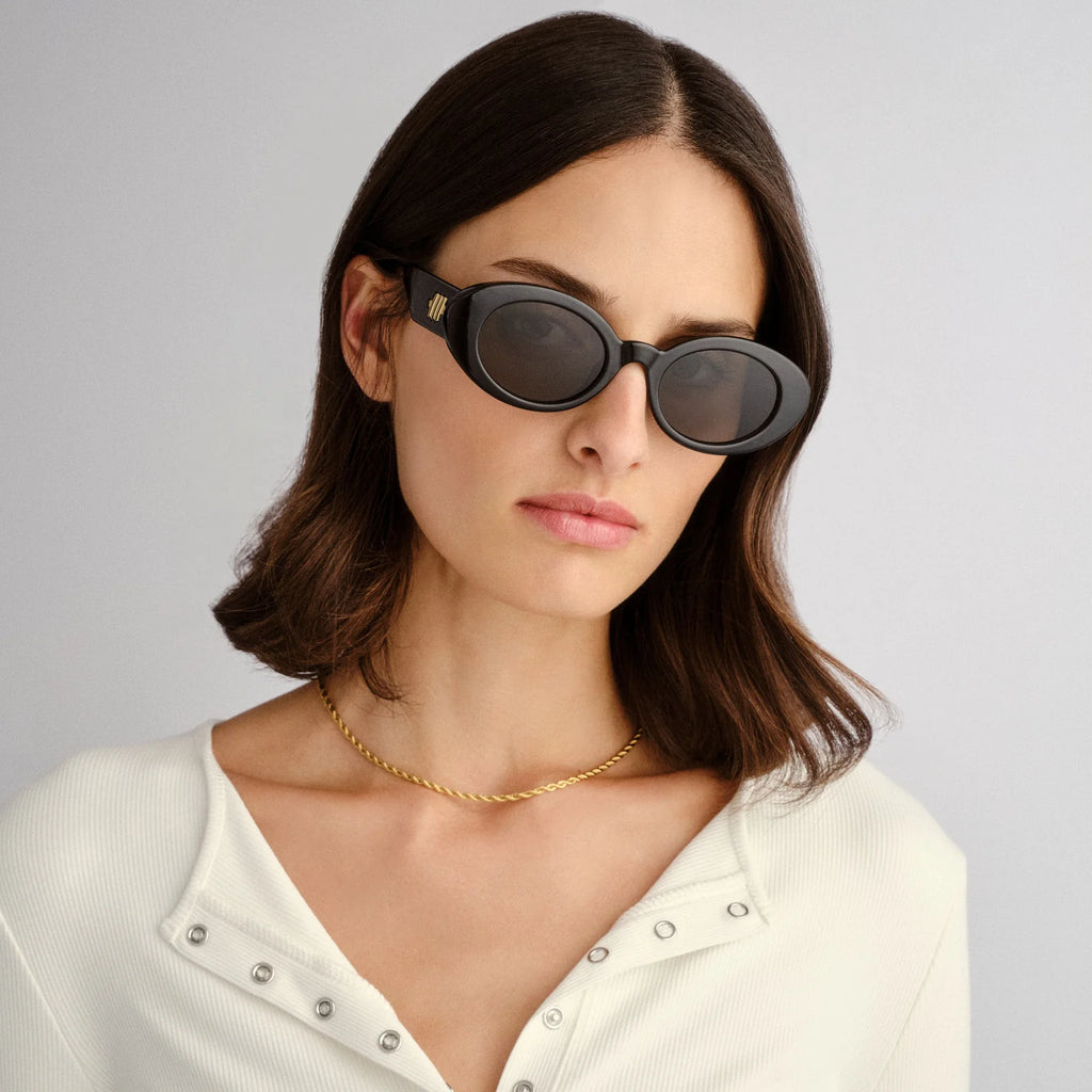 Updating a ‘90s-inspired look with luxurious detailing, our NOUVEAU VIEsunglasses are chic and versatile. Designed with a classic oval silhouetteand midsize fit, the style features bespoke golden Le Specs metal hardwareinlaid on each temple and is ideal for all face shapes.