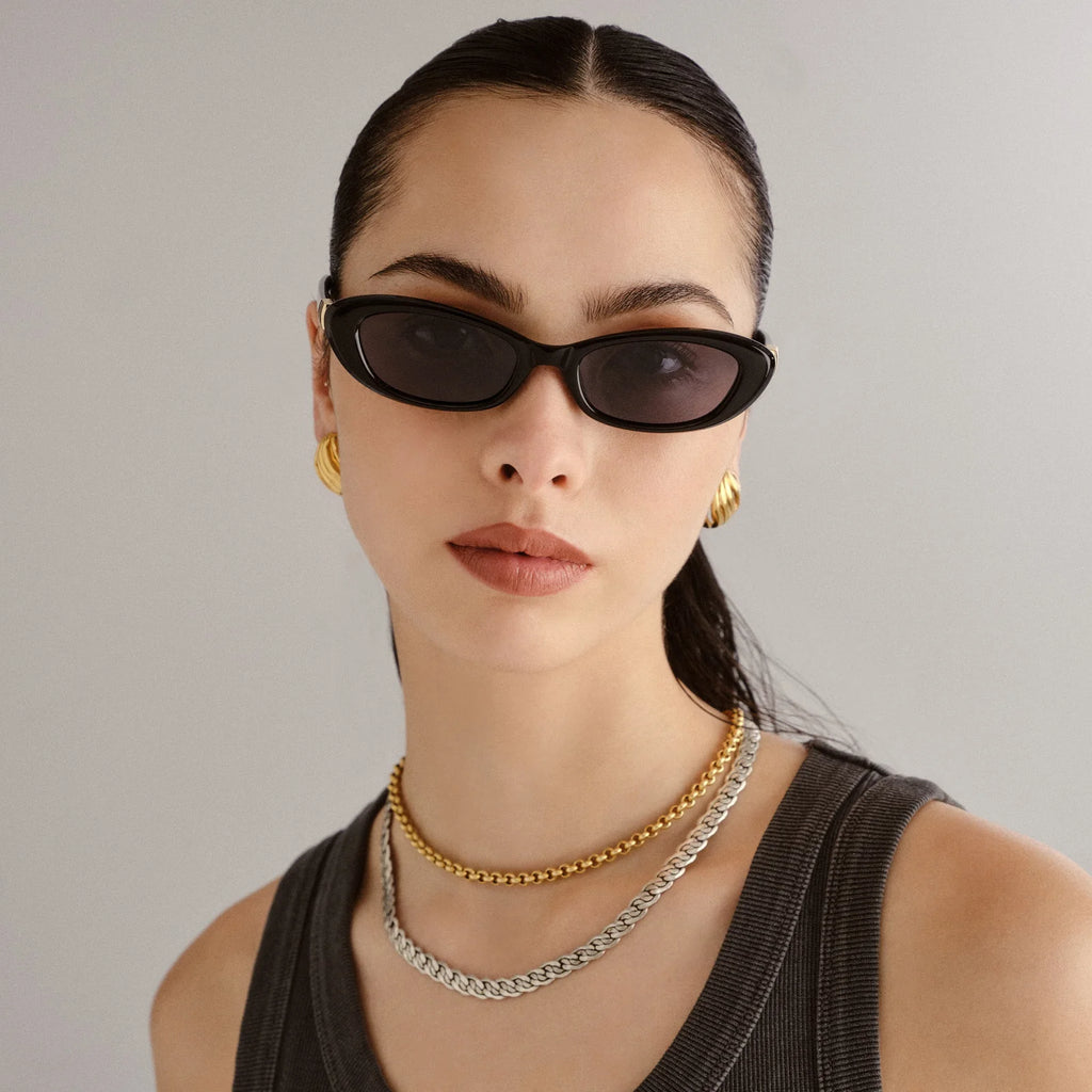 Designed with micro proportions, THE WHISPERER is this season’s must-have update to the classic cat-eye. Featuring a sleek, sculpted frame and distinctive angled lenses, this style delivers a bold yet effortless statement. The refined shape and lightweight construction make it perfect for everyday styling, from off-duty looks to weekend wear.