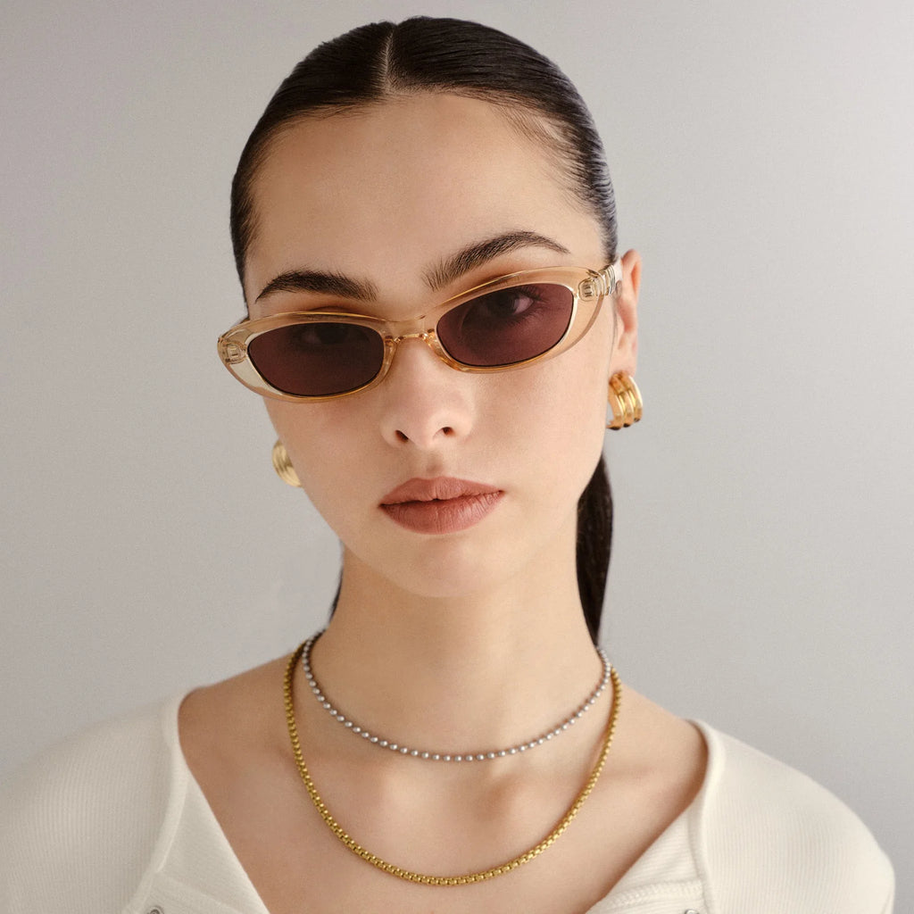 Designed with micro proportions, THE WHISPERER is this season’s must-have update to the classic cat-eye. Featuring a sleek, sculpted frame and distinctive angled lenses, this style delivers a bold yet effortless statement. The refined shape and lightweight construction make it perfect for everyday styling, from off-duty looks to weekend wear.
